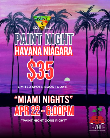 Paint Night At Havana Niagara Restaurant, Niagara Falls – Apr 22nd 2026 “Miami Nights”