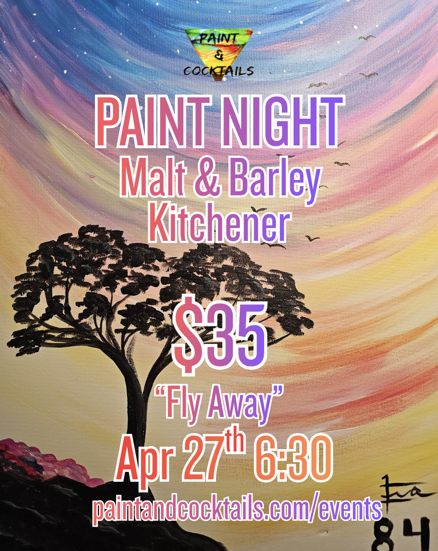 Paint Night At Malt & Barley, Kitchener – Apr 27th, 2026 “Fly Away”