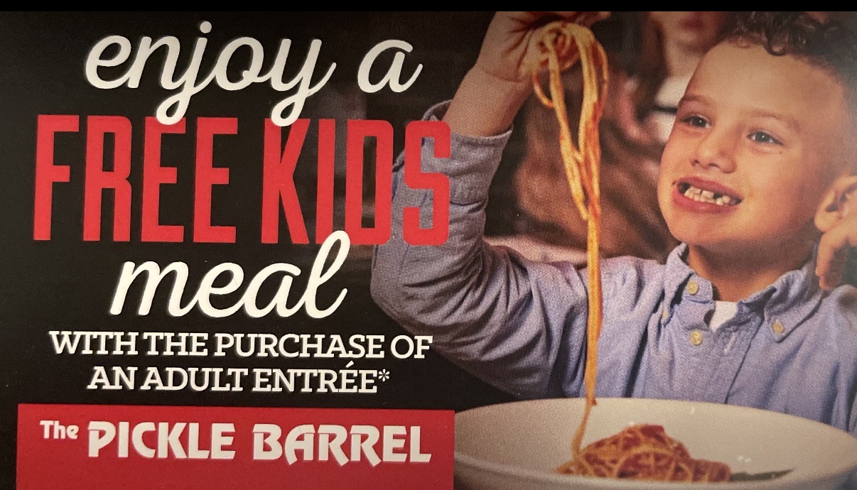 • 🎨 Food & Drinks are not included in the price – And for the next time you come to The Pickle Barrel – A coupon for a Free Kids Meal with Adult Entree purchased!