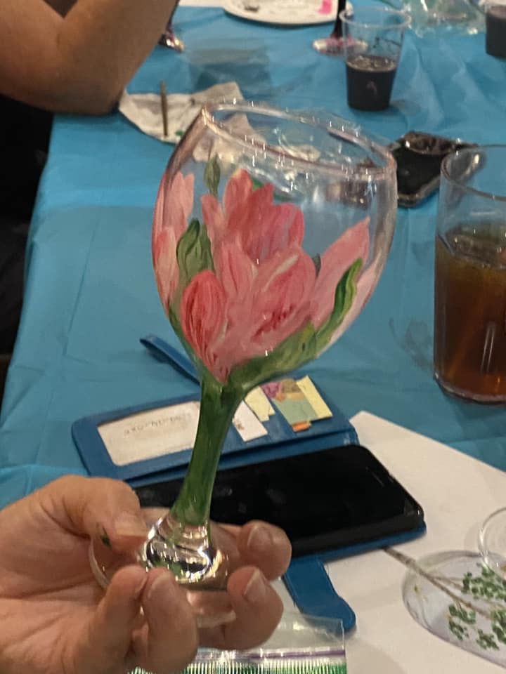 - You’ll spend approx. two hours painting on 2 wine glasses each.